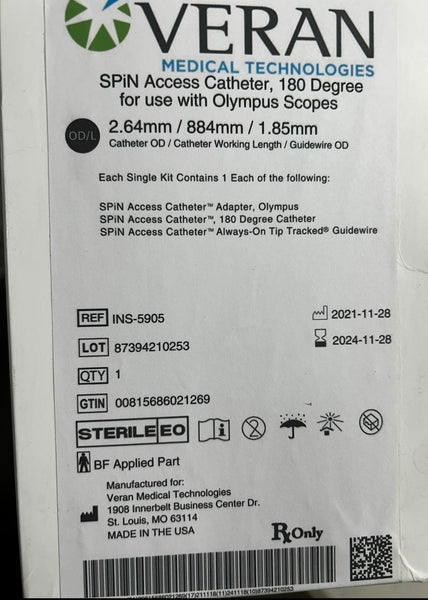 Veran INS-5905, INS5905, SPiN Access Catheter, 180 Degree for use with Olympus Scopes, 2.64mm/884mm/1.85mm, free shipping, no tax.