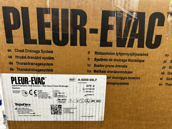 Teleflex A-6000-08lf, Chest Drain Pleur-evac, 2, 500 mL Single Collection Chamber, 16 LPM Airflow Capacity, Adult / Pediatric, 6/cs , free shipping no tax